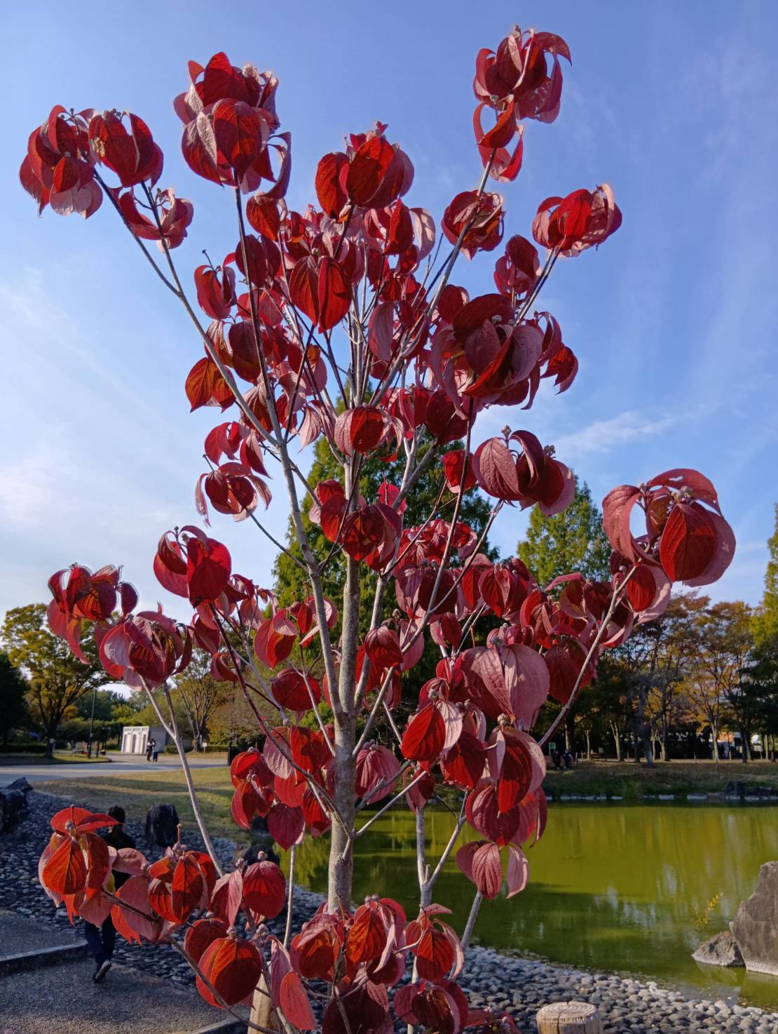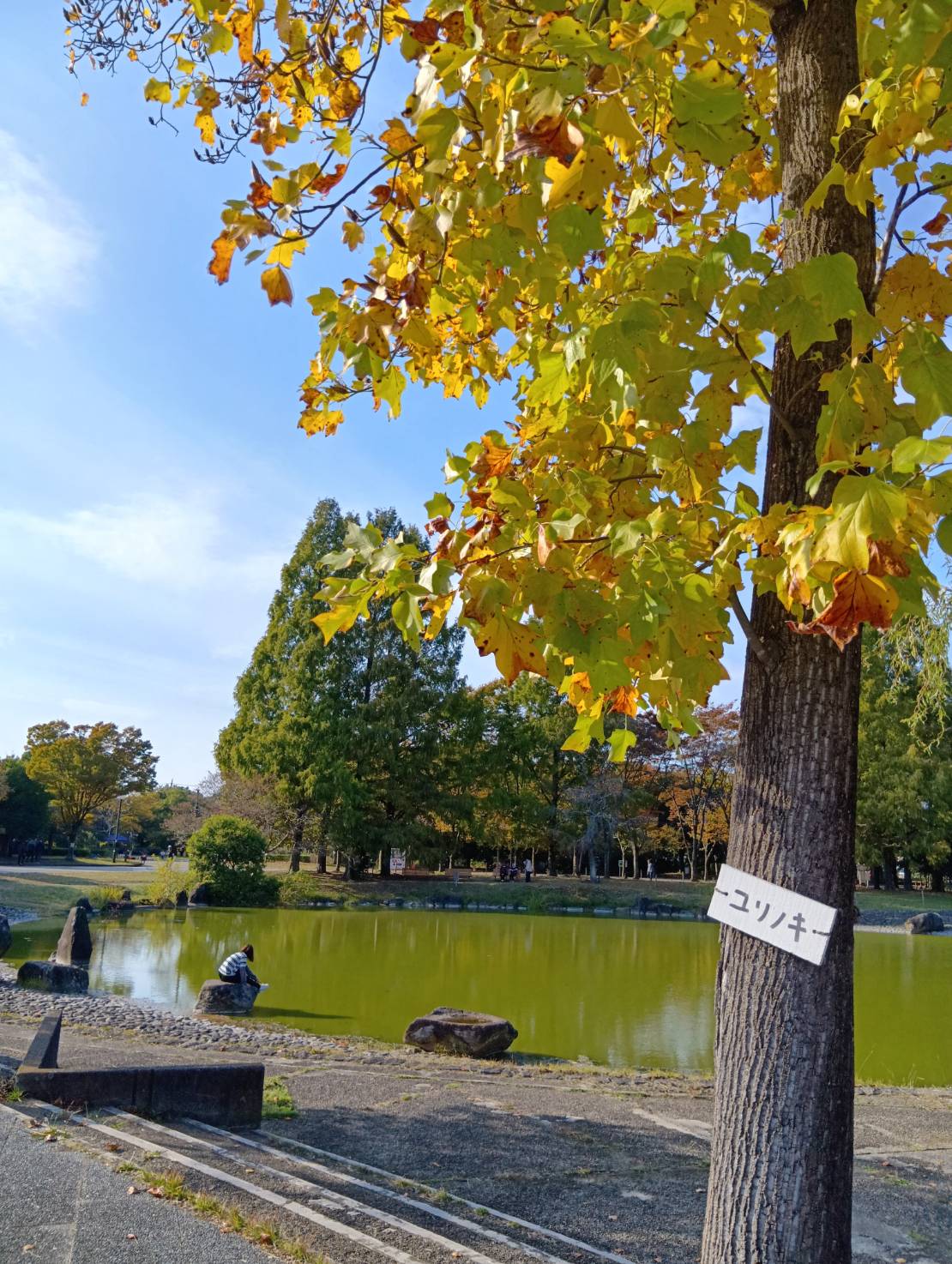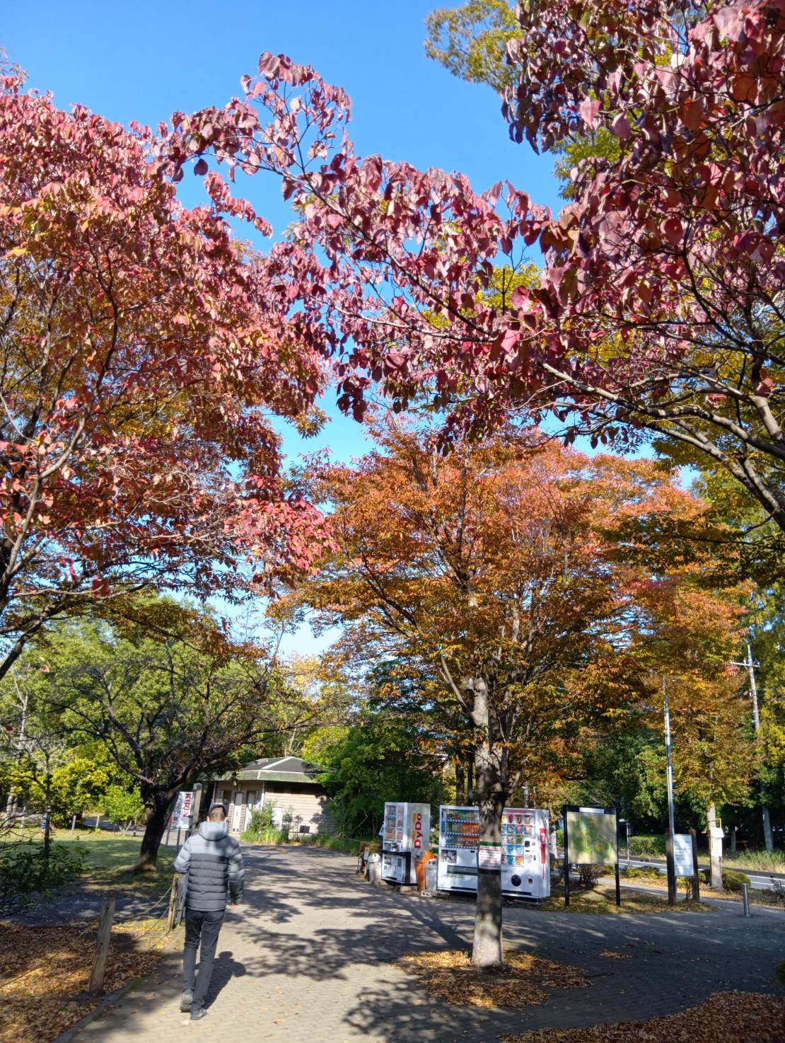 公園では、色とりどりの紅葉🍂が見頃を迎え、地面にはきれいな葉っぱがたくさん。