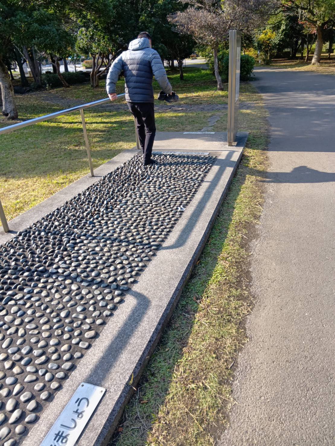 途中には、足の裏を刺激するあの「健康石畳」が!